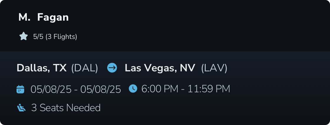 Unlike other methods to find passengers for a private flight, TailOne can connect you with other parties that have a membership with your provider.